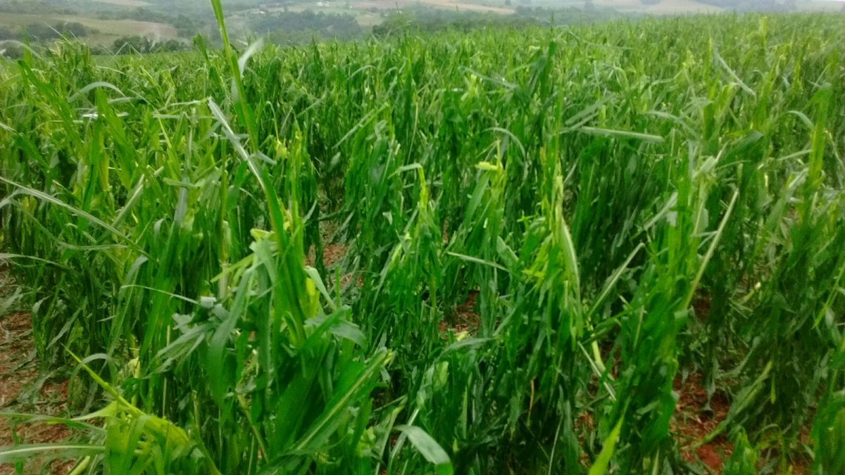 Lavoura de milho danificada com chuvas e queda de granizo em Abelardo Luz (SC)