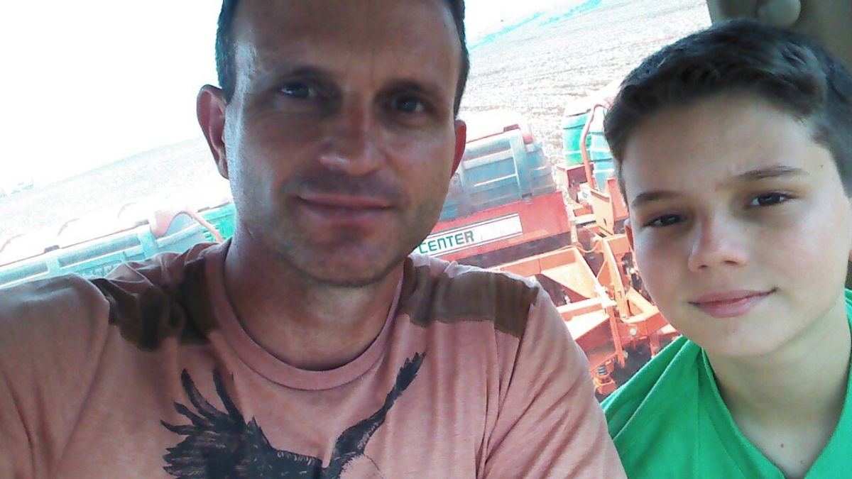 Pai e filho finalizando o plantio da soja em Brasilândia do Sul (PR)