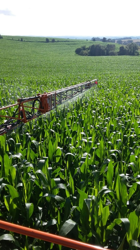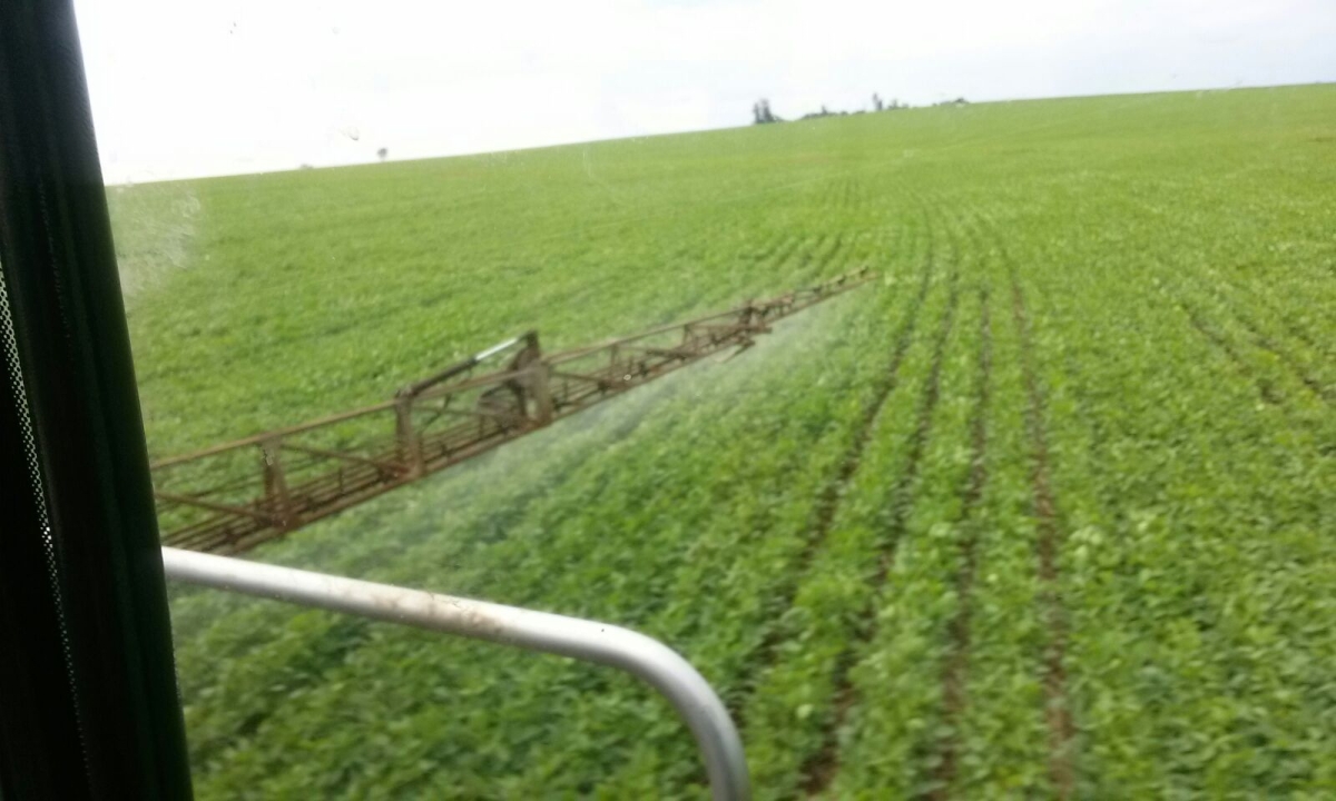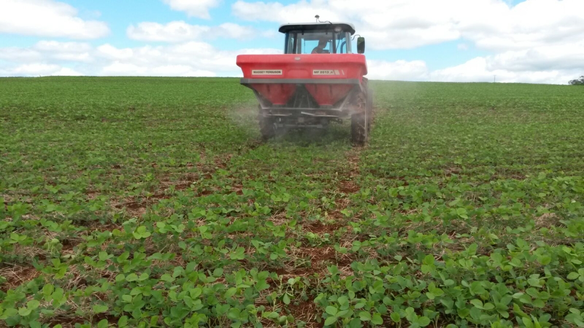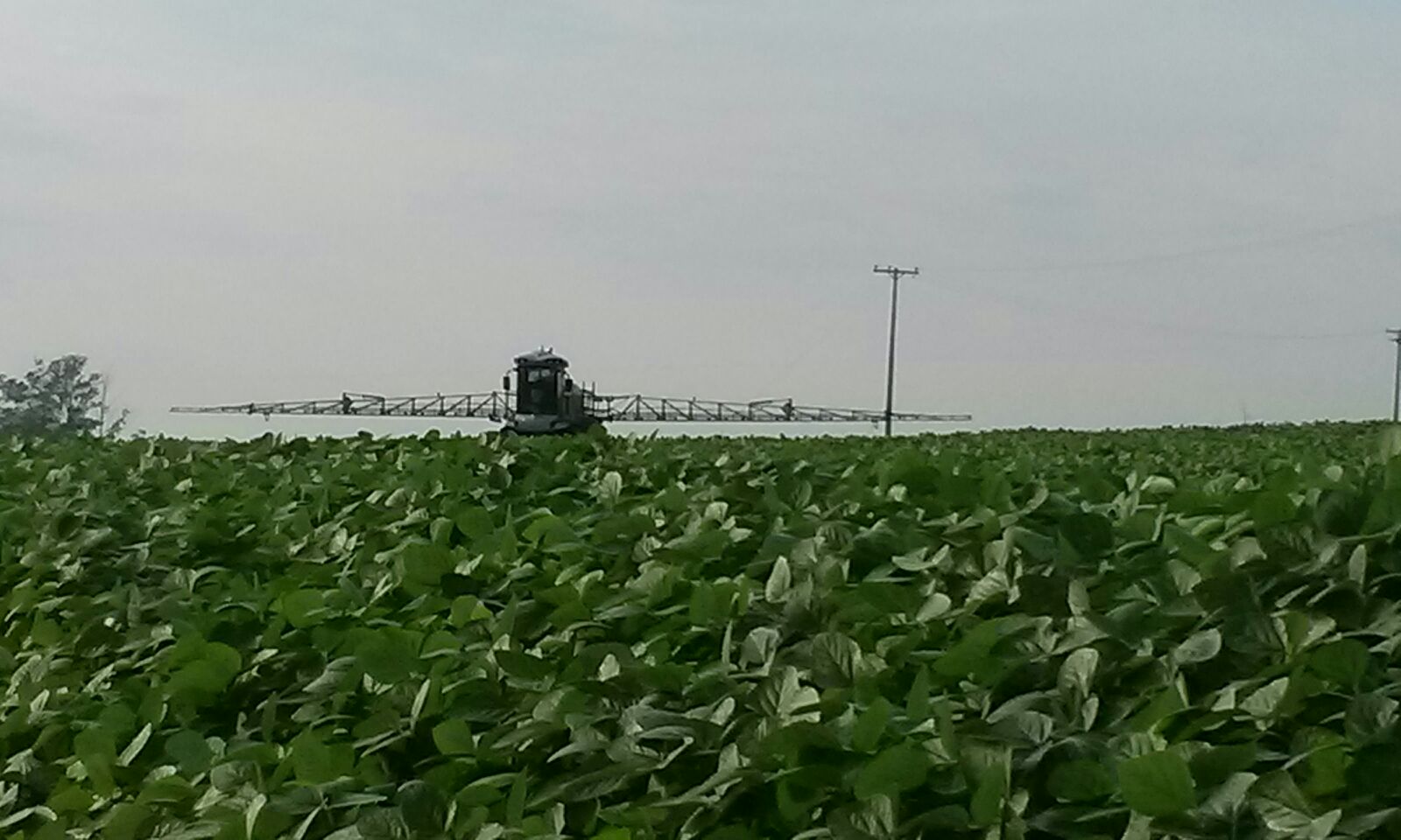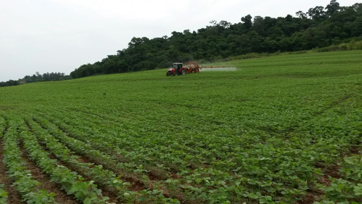 Aplicação de fungicida na lavoura de soja em Assis Chateaubriand (PR), na propriedade de Franciele C. Ferreira