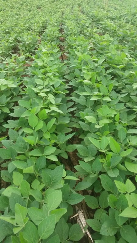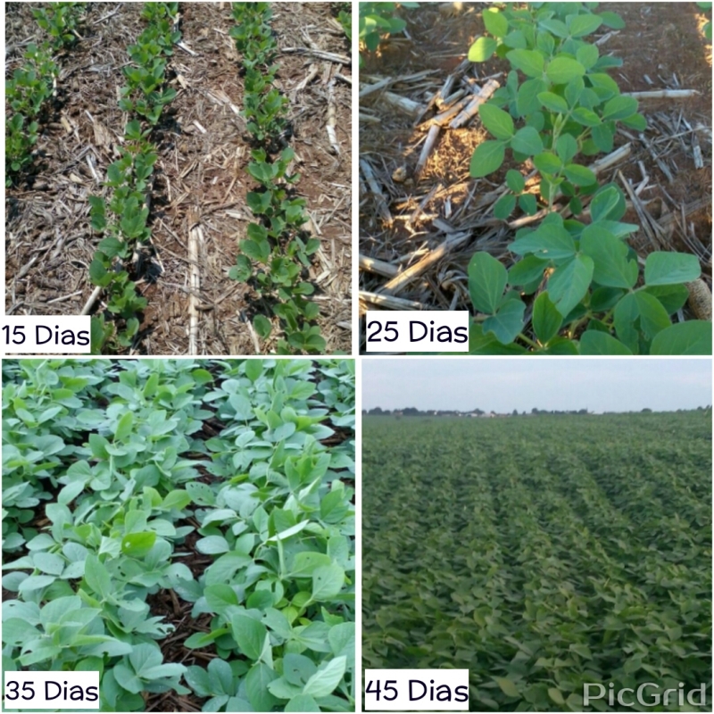 Dei uma passada de vistas nas fotos e as lavouras de soja que estão nos estágios V4 ou V5 em diante, esses trifólios se apresentam num verde mais claro porque estão em pleno desenvolvimento, com certeza após um dia de chuva e, quando volta o sol haja fotossíntese e, também alguns cultivares tem colorações variadas . Não é o caso que comentei acima, pois aquela situação poderia ocorrer com plantas nos estágios V1 ou V2.