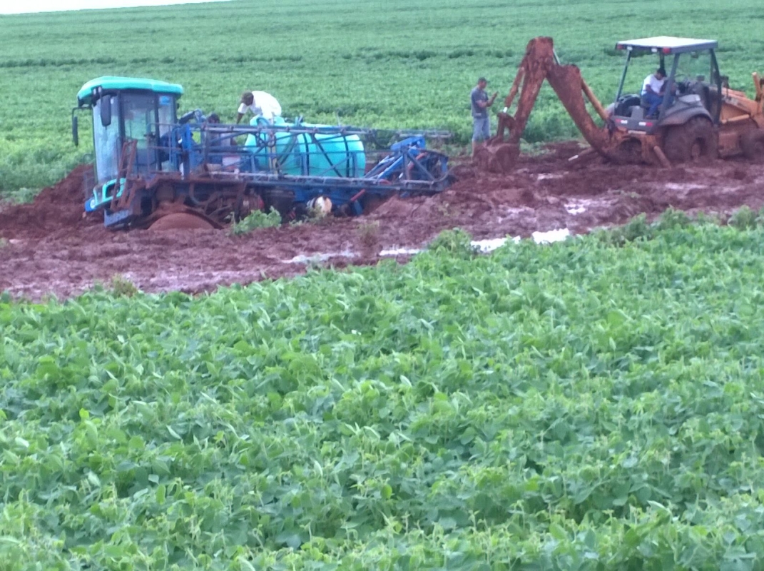Solo encharcado em Douradina (MS), dos produtores Luiz Sérgio e Cesar Augusto