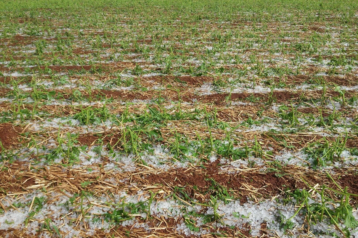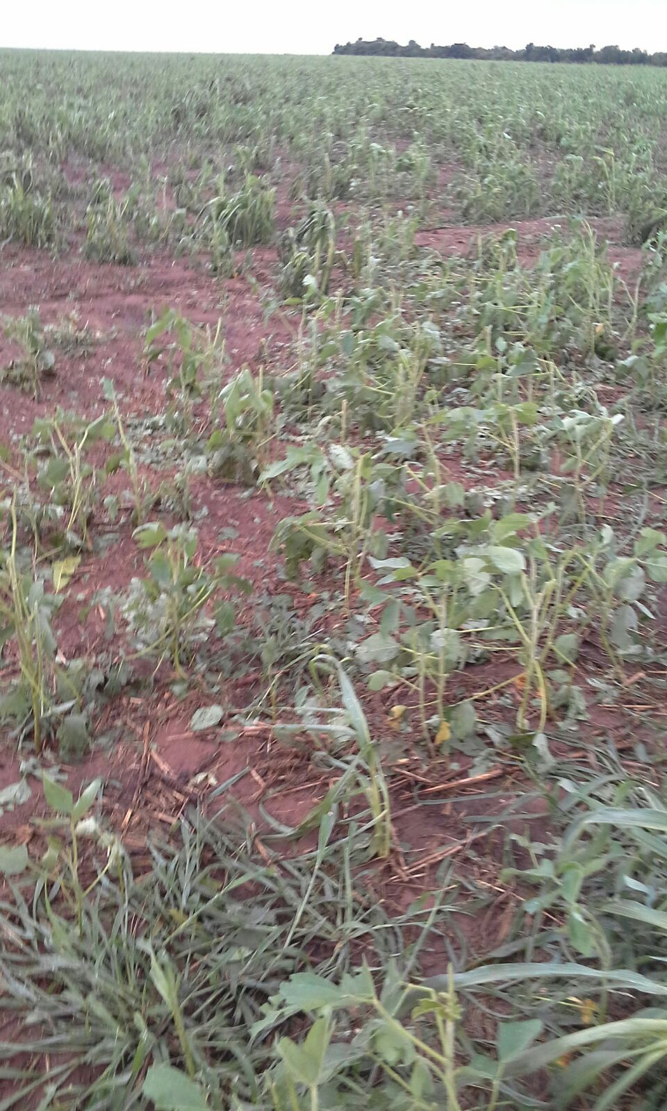 Estragos causados pela chuva de granizo na lavoura de soja em Gaúcha do Norte (MT)