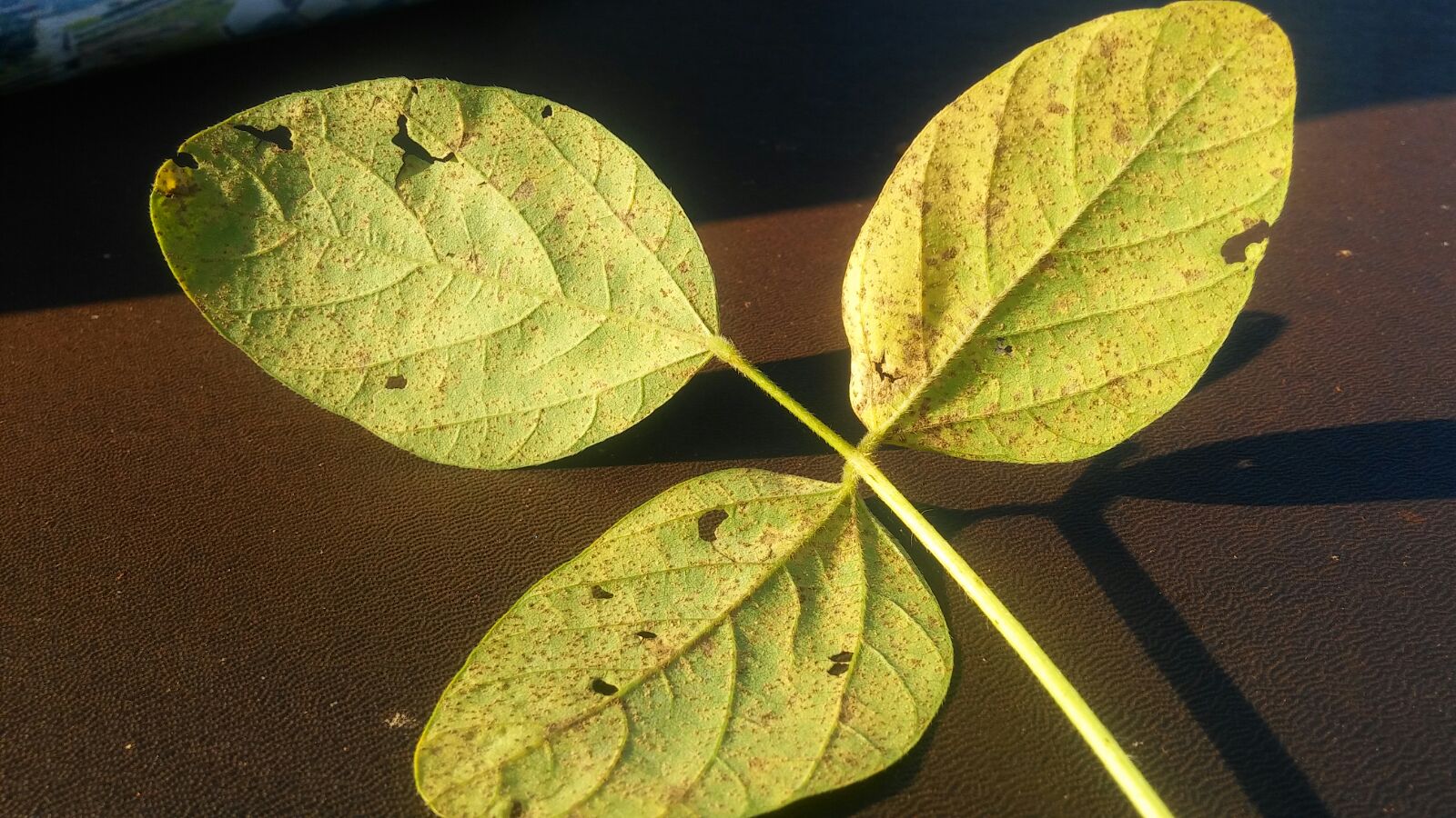 Folha de soja atacada por ferrugem asiática em Iruña (PY). Enviado pelo Engenheiro Agrônomo Emerson Luiz Romanha