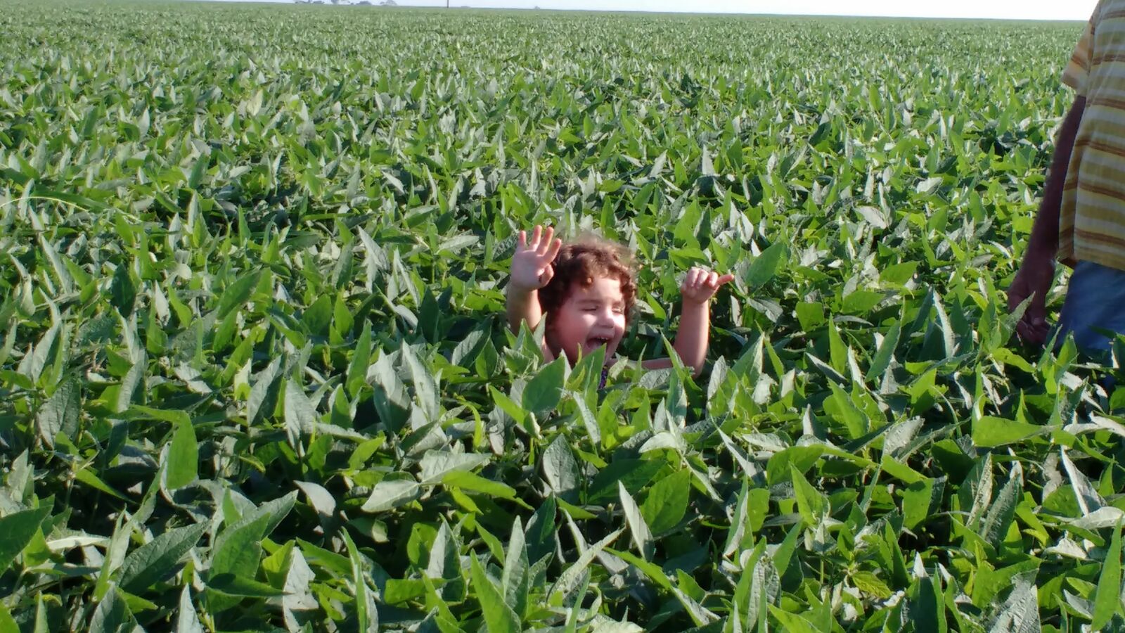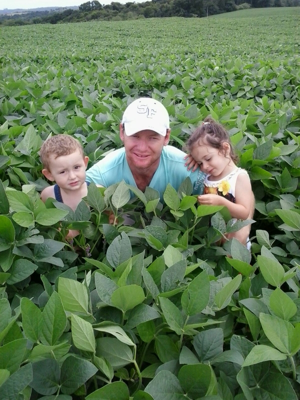 Luigi Borella, Mateus e Maria Eduarda Possobom na lavoura de soja em Jari (RS)