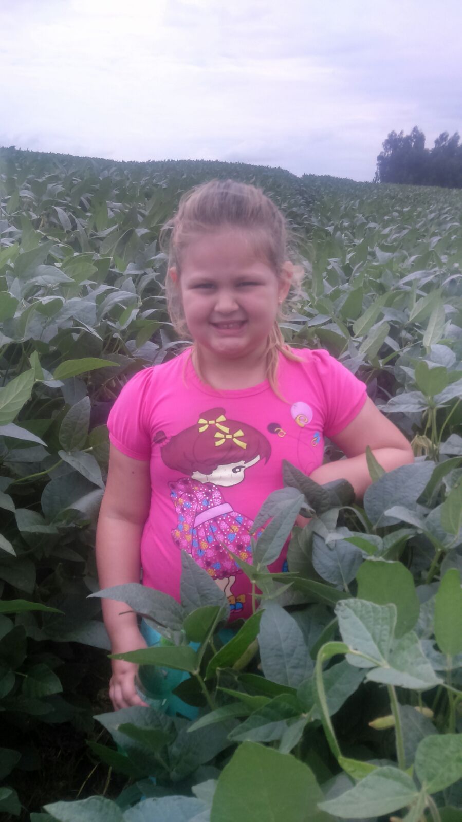 Kataryna Baiotto na lavoura de soja em Santa Bárbara do Sul (RS), do produtor Fabiano Baiotto