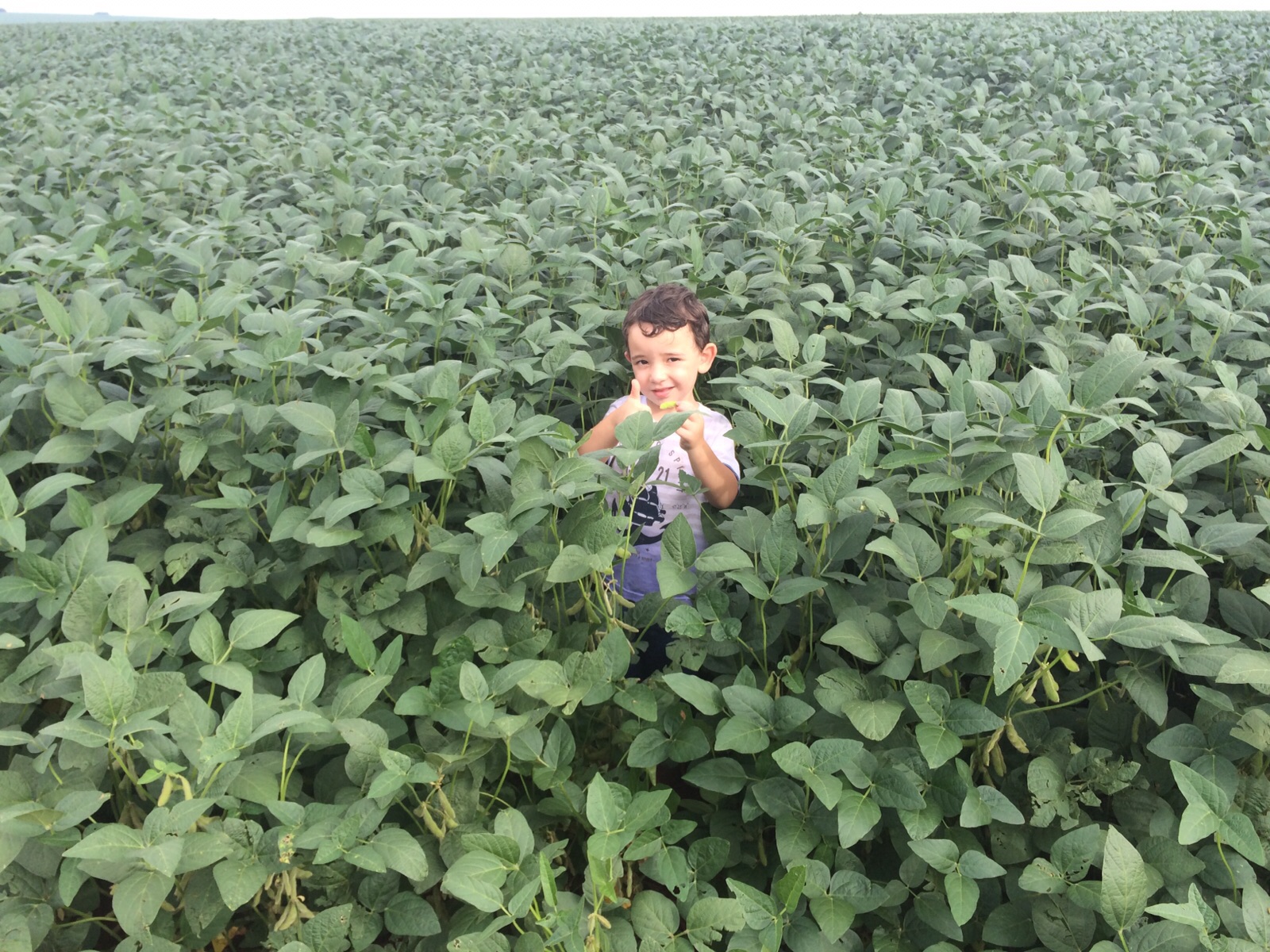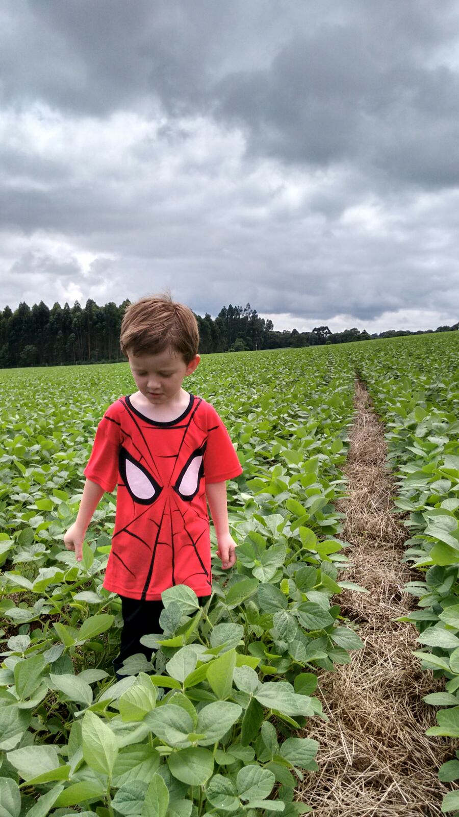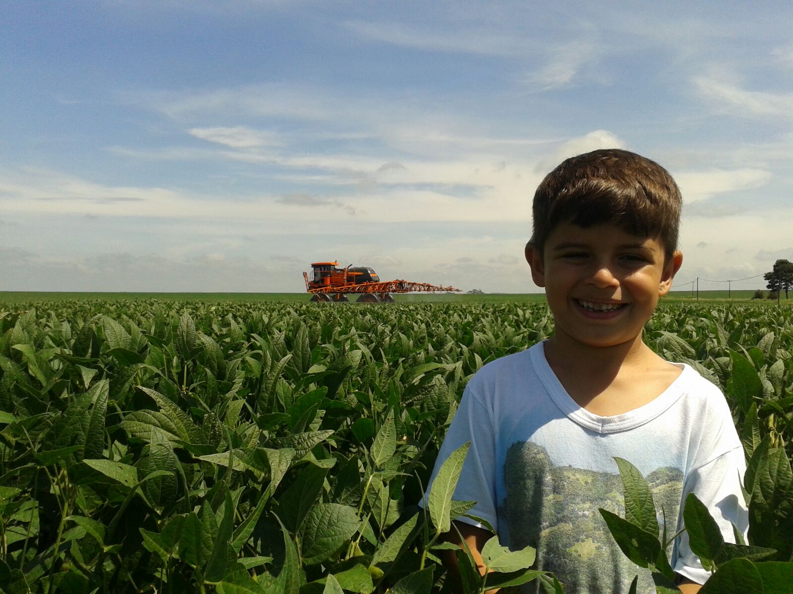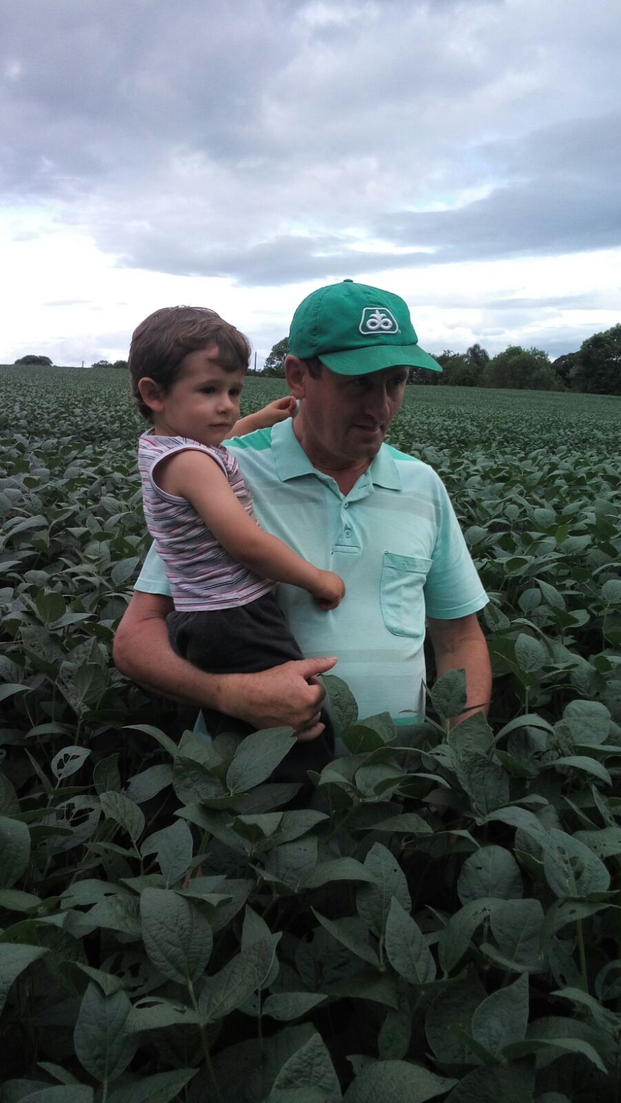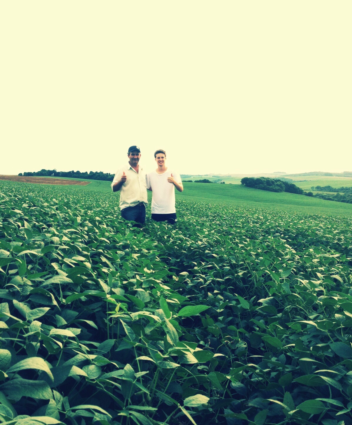 Henrique na lavoura de soja do avô Osni Ruthes em Itaiópolis (SC)