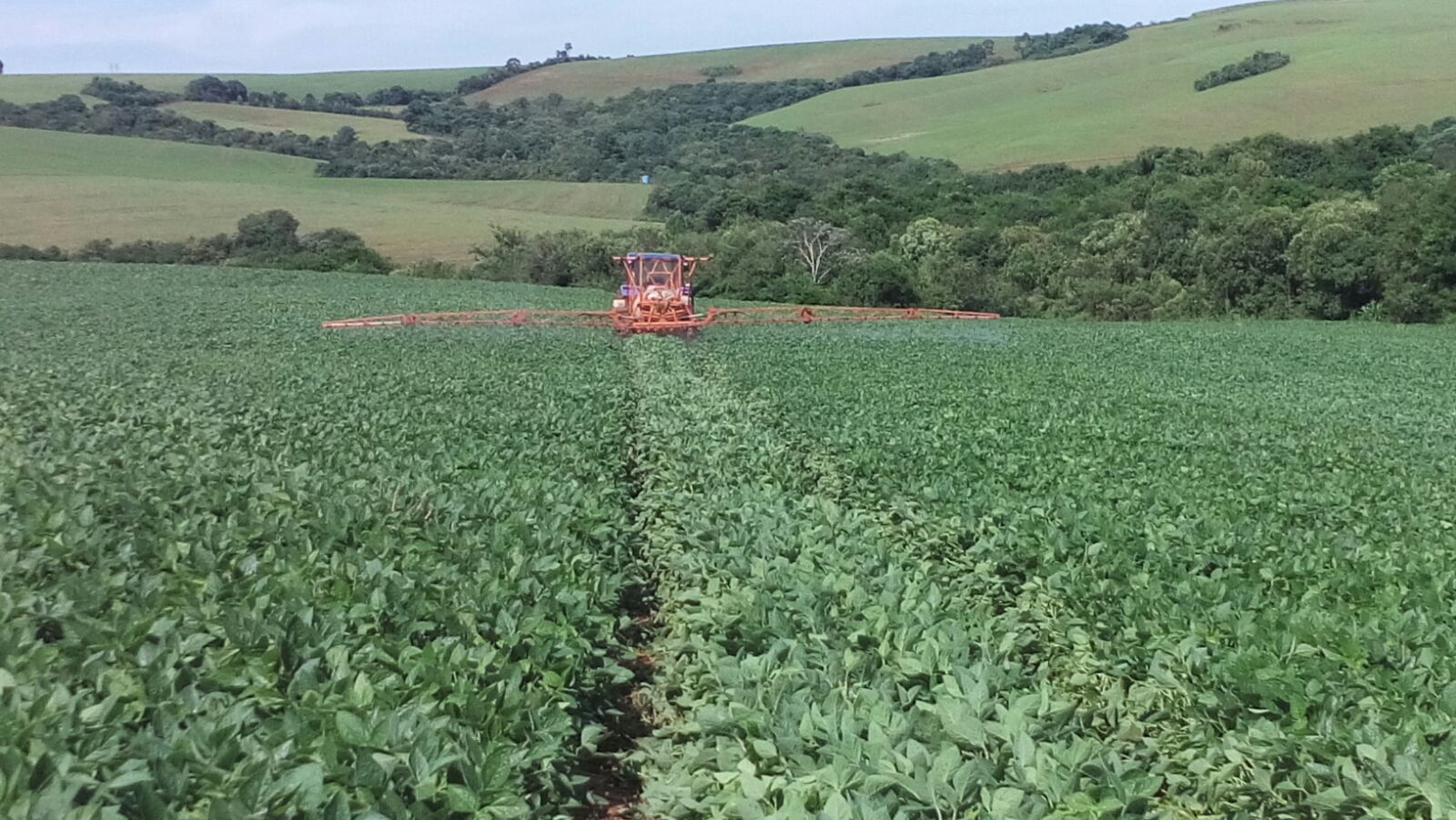 Aplicação de fungicida na lavoura de soja em Rio Pardo (RS), do produtor Luís Felipe
