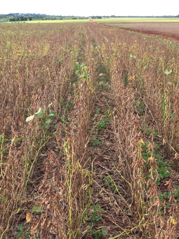 Consequências da falta de chuvas na lavoura de soja em Nueva Esperanza (PY), do produtor Neivo Fritzen