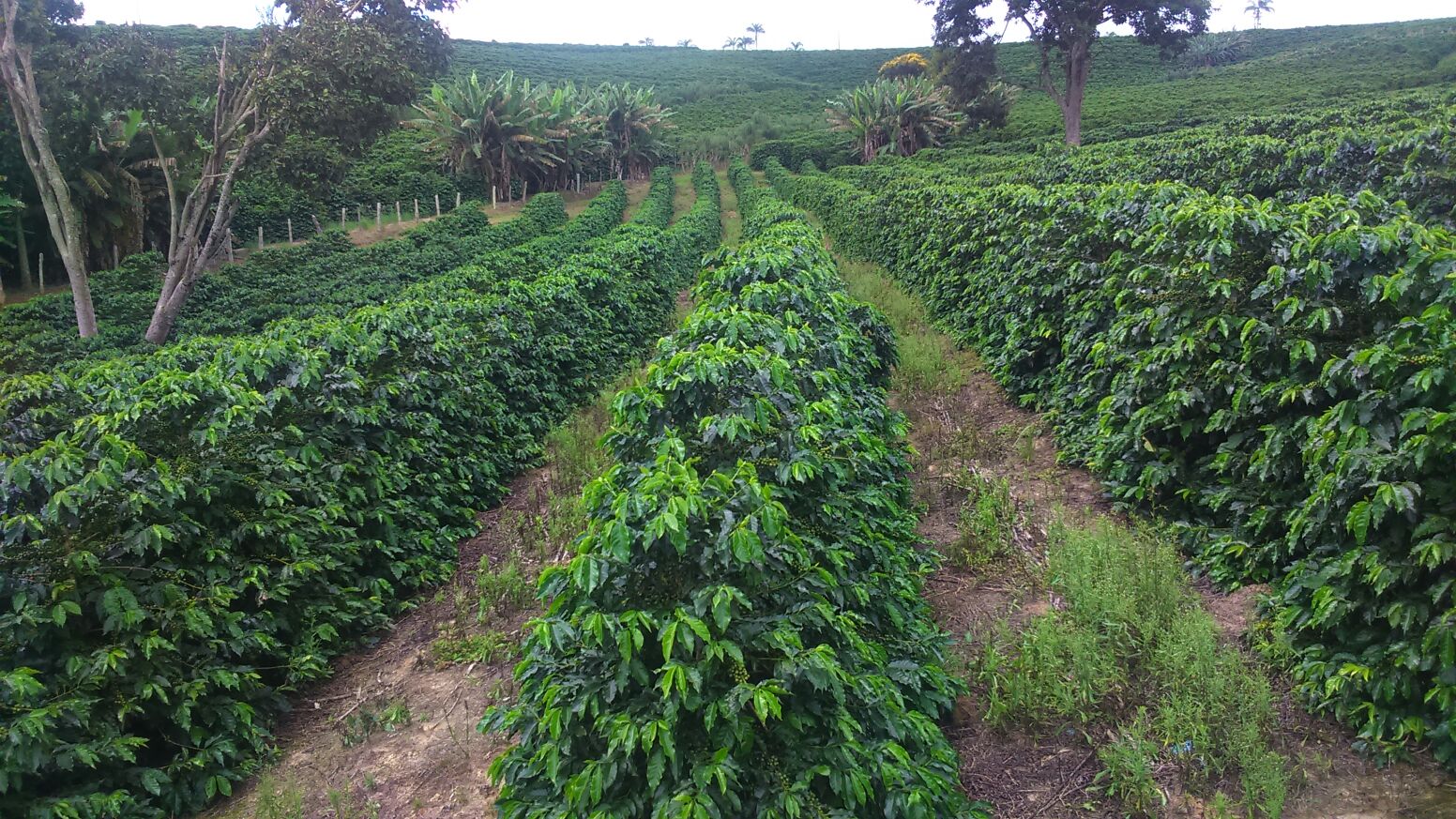 Lavoura de café conilon sentindo os efeitos da seca em São Gabriel da Palha (ES), do produtor Wesley Junior Loss.