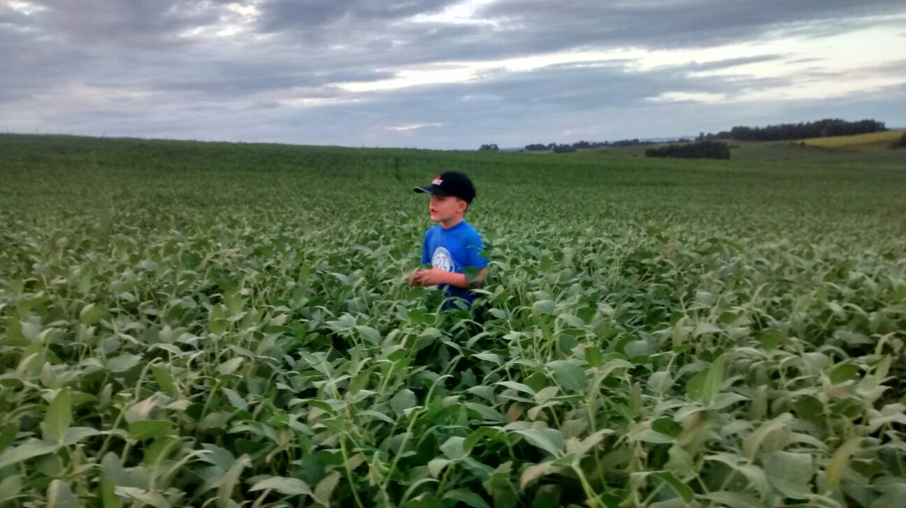 Heitor na lavoura de soja em Hulha Negra (RS)