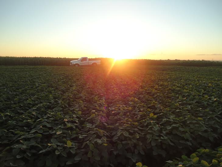 Amanhecer na lavoura de soja safrinha no Paraguay. Colônia Yguazu