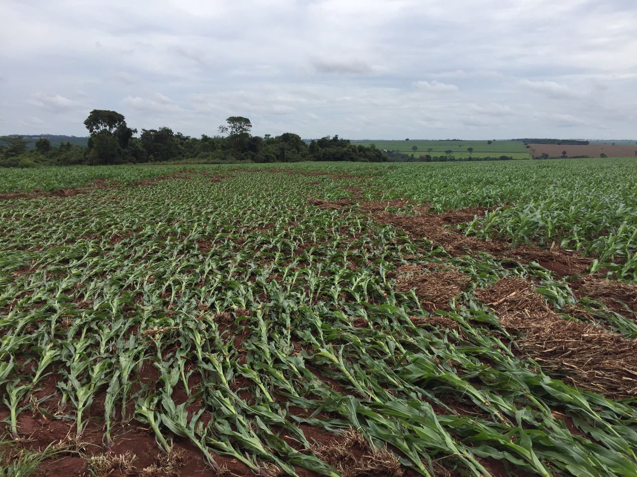 Lavoura de milho após passagem de tromba d'agua em Planura (MG). Envio do engenheiro agrônomo, José Cusinato Junior