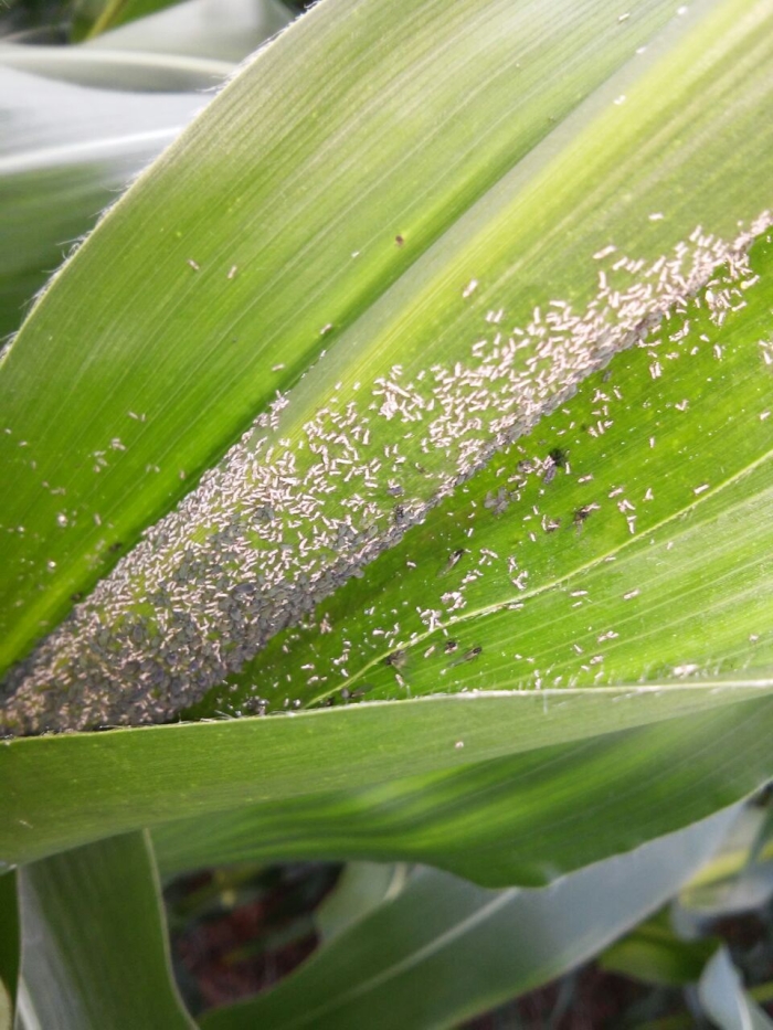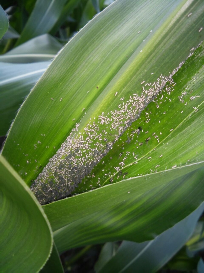 Ataque de pulgão na lavoura de milho em Nova Aurora (PR), do produtor Ilmo Volpato