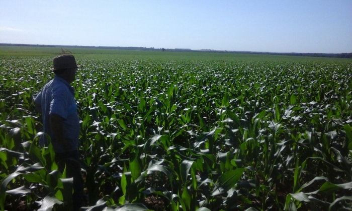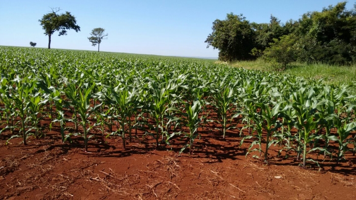 Lavoura de milho safrinha em Santa Rita (PY), na propiedade Valdomiro da Veiga