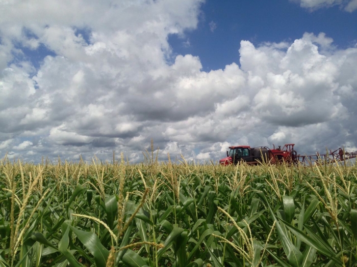 Aplicação de fungicida na lavoura de milho em Toledo (PR), do produtor Amilton Donassolo