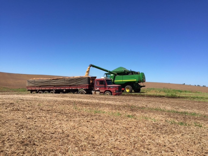 Colheita de soja em Panambi (RS). Imagem do Engenheiro Agrônomo Sérgio Porn