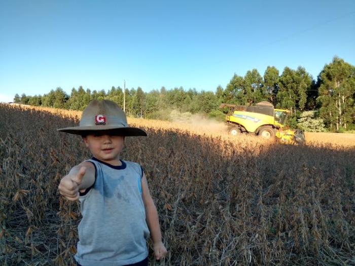 Felipe Chagas acompanhando a colheita da soja em Nonoai (RS). Enviado por Vinivius Chagas