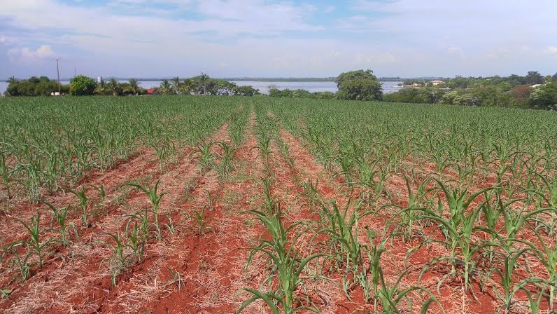 Lavoura de milho safrinha em Guaíra (PR), na Fazenda Bom Jesus. Envio de Jones Ambiel