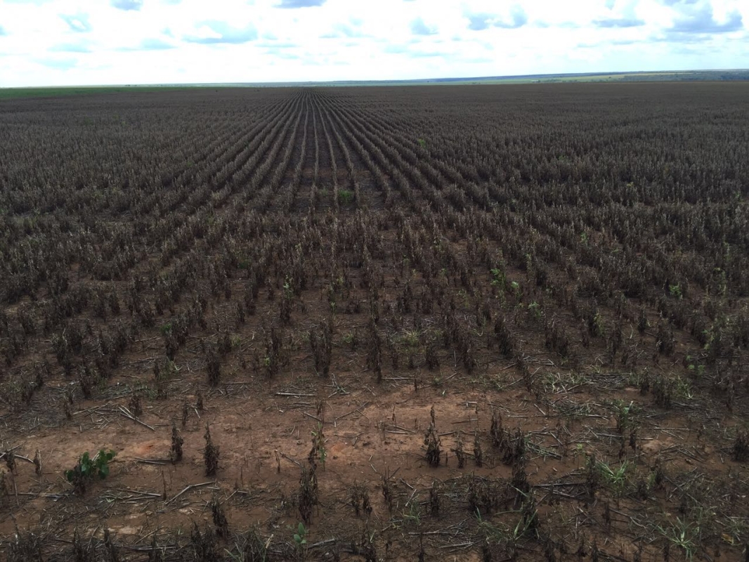 Lavoura de soja safrinha, após 25 dias sem chuvas em Ubiratã (PR), da Familia Garcia