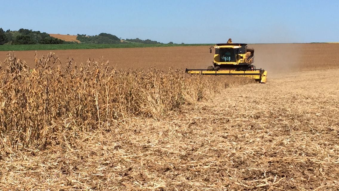Colheita de soja em Mato Leitão (RS), do produtor Diego Posselt