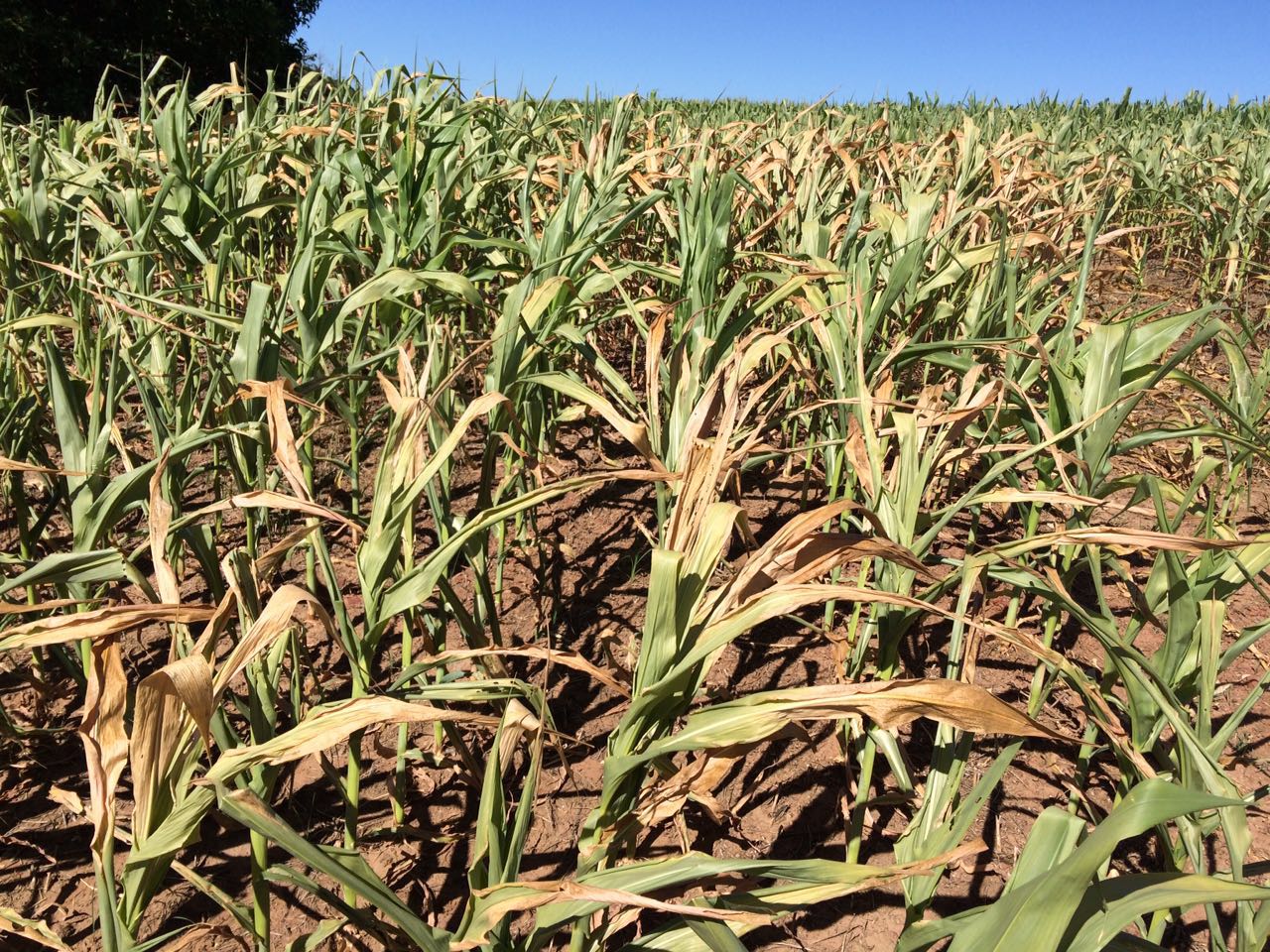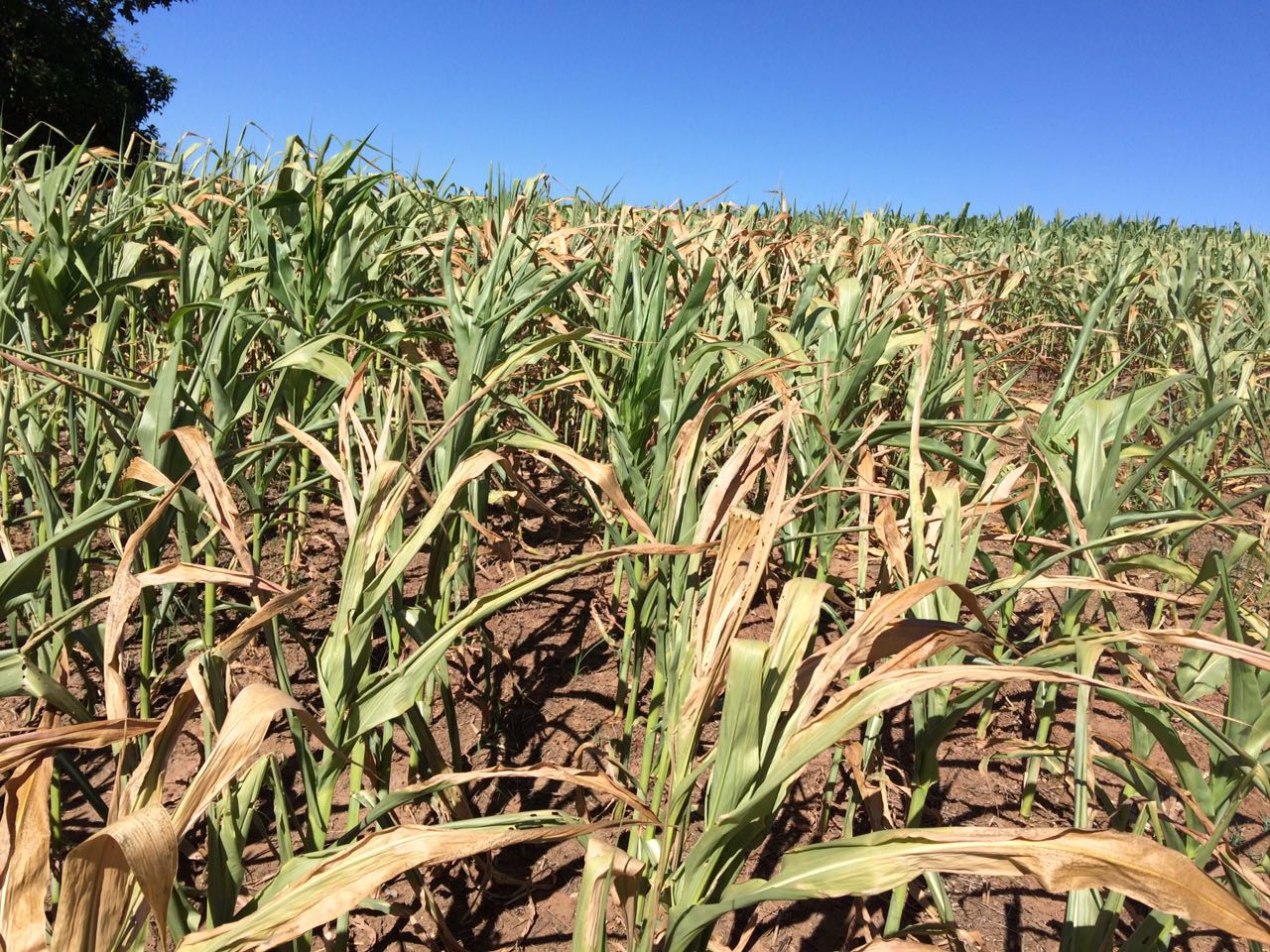 Lavoura de milho safrinha em Nova Santa Rosa (PR), há 30 dias sem chuvas