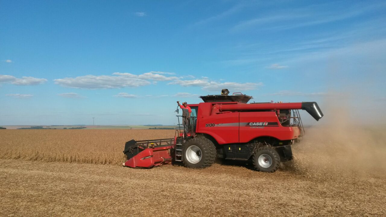 Início da colheita de soja em Mamborê (PR), do produtor Camilo Brunetta