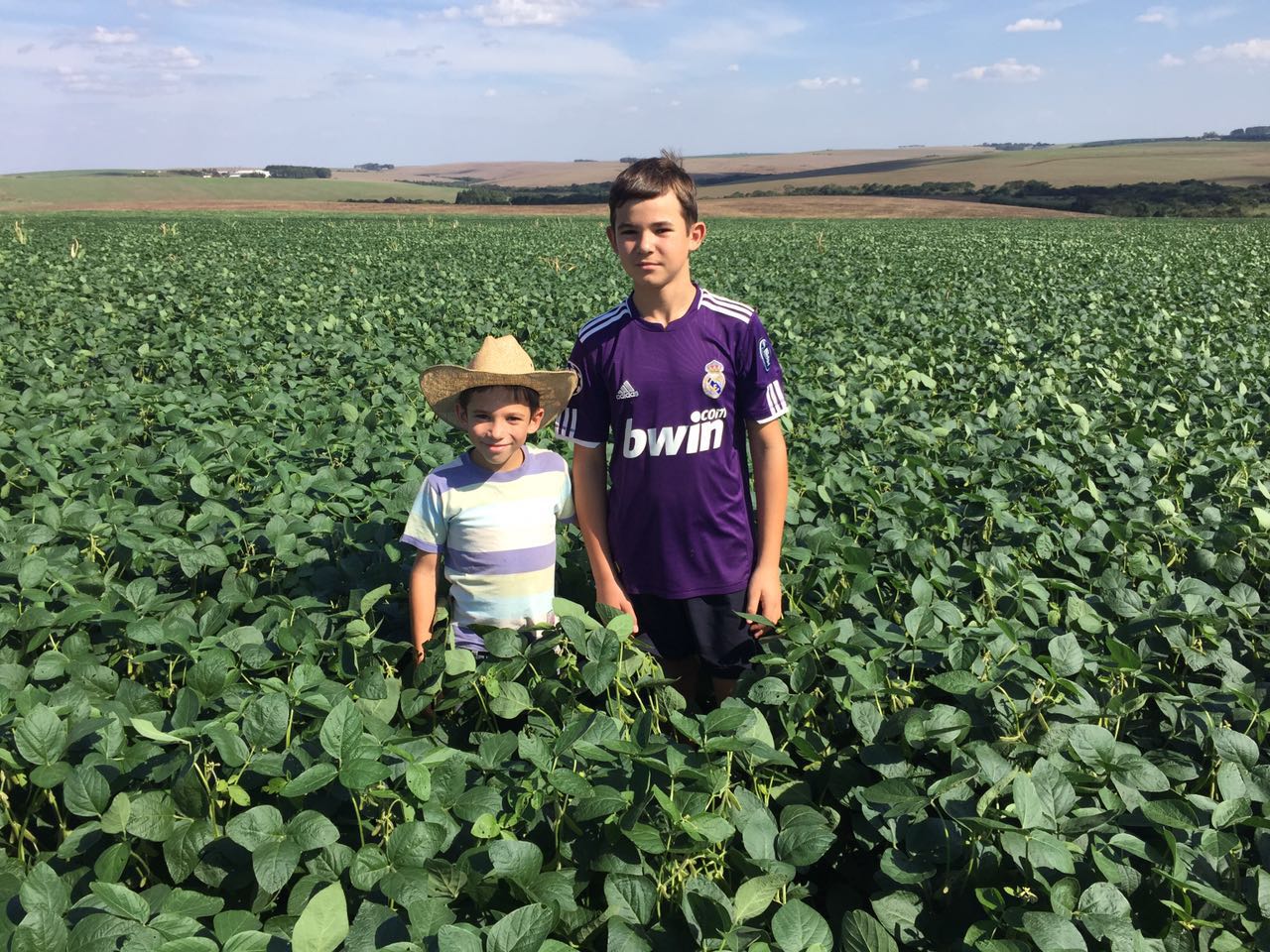 Engenheiro Agrônomo Aldrovan Lasta e seu filho Joaquim Lasta ma lavoura de feijão rajado em Honório Serpa (PR)