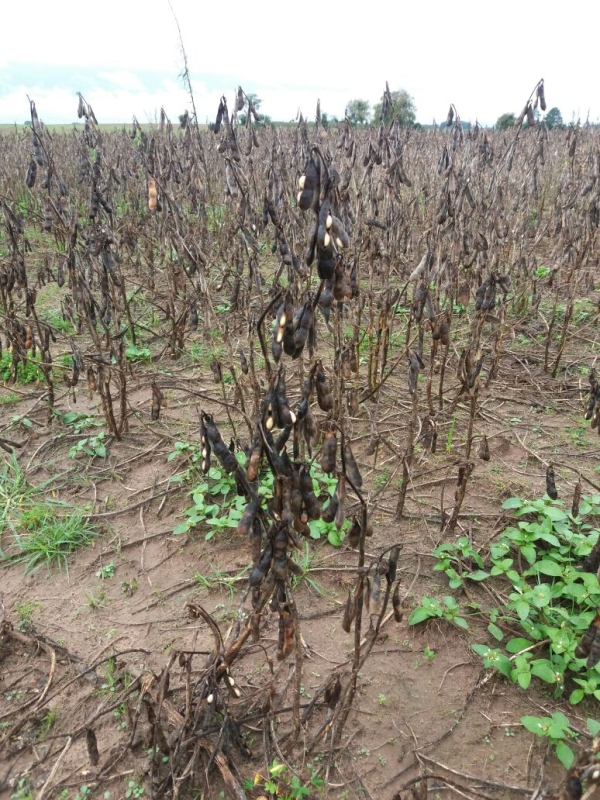 Lavoura de soja em Pedras Altas (RS). Produção foi prejudicada pelo excesso de chuvas. Envio de produtor Marcelo Soares Rocha