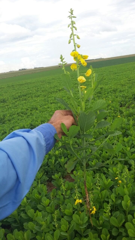Plantio de crotalária na fazenda Olho do Céu, em Chapadão do Céu (GO). Foto tirada pelo engenheiro agrônomo Adelar Theisen