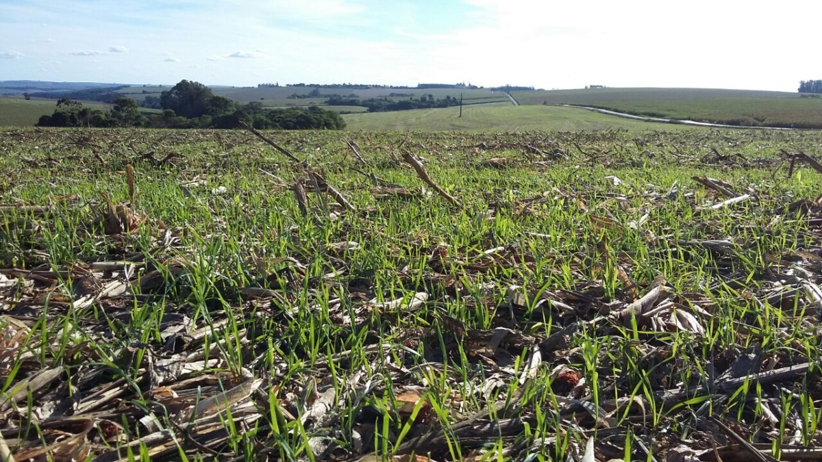 Lavoura de trigo sobre palhada de milho safrinha em Ubiratã (PR). Envio do engenheiro agrônomo Braciforte
