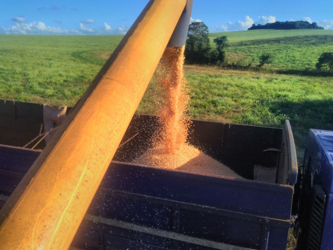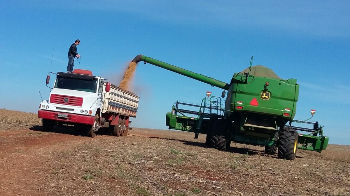 Colheita de soja em Santa Teresa, no Paraguai. Envio de Sandro Wiest na estância Terra Nostra