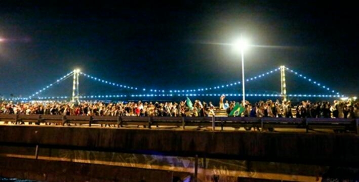 Abaixo, veja as imagens da manifestação na noite desta domingo em Florianópolis: