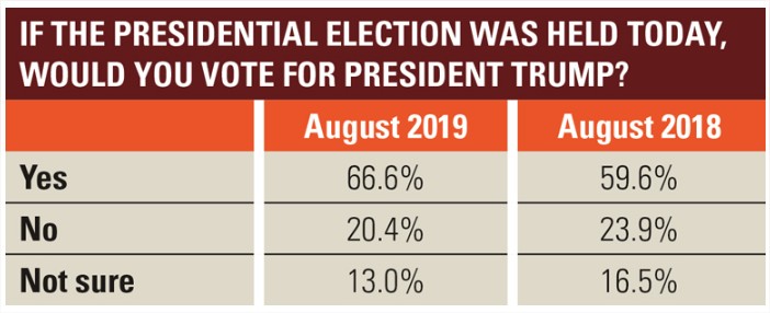 Enquanto a guerra comercial segue ferindo muito profundamente o agronegócio norte-americano, a relação entre os produtores rurais e o presidente dos Estados Unidos é bastante interessante de ser observada. Uma pesquisa feita pelo site local Farm Futures entre 21 de julho e 3 de agosto, portanto bastante recente, mostrou que 67% dos agricultores apoiariam a reeleição de Trump em 2020.