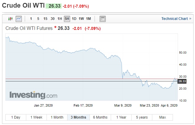 Últimos três meses foram de baixas intensas para o petróleo. Gráfico mostra o WTI em Nova York - Fonte: Investing