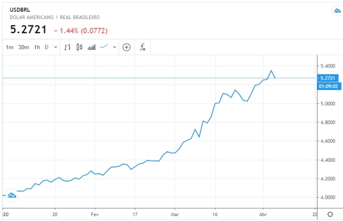 Gráfico mostra a trajetória do dólar em 2020 frente ao real