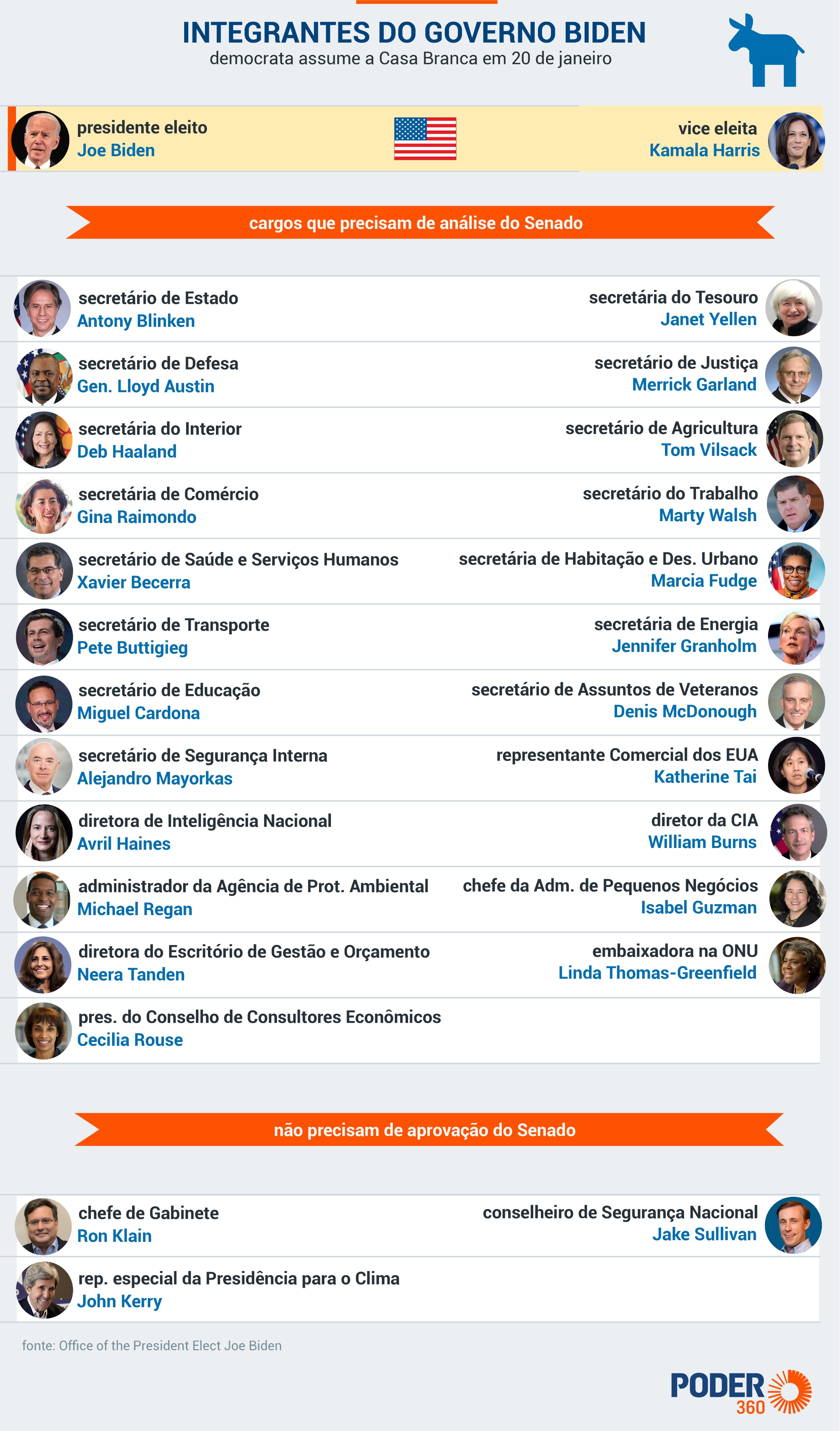 Integrantes indicados para Secretárias no governo Biden - Imagem: Poder 360