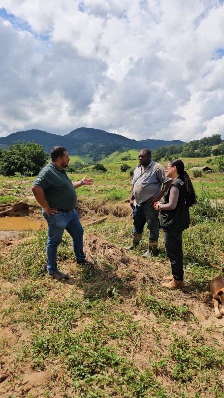 Karina voltou à propriedade nessa quarta-feira (4/3) junto com o gerente do Escritório Regional do Sistema Faemg Senar em Juiz de Fora, Emerson Simão, e o assistente de desenvolvimento rural do Sindicato de Produtores Rurais de Ubá, Everton Gonçalves. Luiz Fernando é um dos produtores rurais de Ubá atingidos pelas consequências da chuva na região. Em poucas horas, segundo a prefeitura municipal, choveu cerca de 91 milímetros. As propriedades às margens dos córregos Miragaia e Alfenas, que formam o rio Ubá, foram as que mais sofreram. A força da água levou plantações, expôs raízes, destruiu pontes de concreto e interditou vias. De acordo com um levantamento da prefeitura de Ubá, até a quarta-feira, 31 pontes tinham sido danificadas, sendo que 14 foram consideradas colapsadas. No total, 650 quilômetros de estradas deverão ser desobstruídas ou receber nova camada de cascalho.