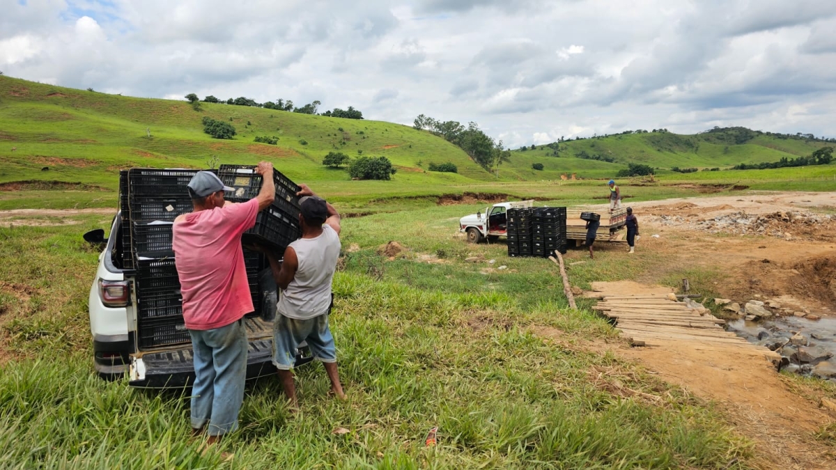 Por causa das interdições, o escoamento da produção que foi possível aproveitar está dificultado. Em uma das pontes foi levada pela chuva, moradores da região improvisaram uma pinguela, por onde só é possível passar a pé ou de moto. Os produtores, então, levam a colheita de carro até esse ponto do rio, atravessam com as caixas nas costas, e carregam a camionete do outro lado para levar até a cidade.