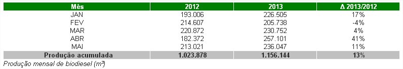 Produção acumulada de biodiesel em 2013 é recorde nos primeiros cinco meses do ano