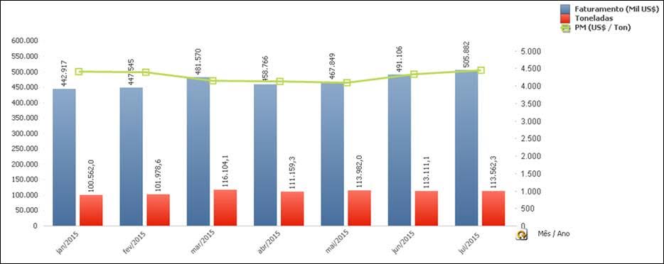 Faturamento US$ (jan-julho/2015) |