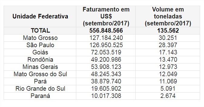 Em setembro, as exportações brasileiras de carne bovina tiveram um volume 17% maior do que o exportado no mesmo período do ano passado, segundo dados da Associação Brasileira das Indústrias Exportadoras de Carnes (ABIEC). No mês, foram embarcadas 135.562 toneladas do produto, o que gerou um faturamento de US$ 556 milhões, alta de 17,46% sobre o que foi faturado em setembro de 2016.