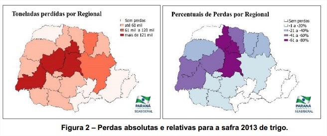 Estima-se que 954 mil toneladas serão perdidas em função das geadas, principalmente, mas também da seca em maio e de doenças ocasioandas pelo excesso de chuvas em junho. Com isso a produção paranaense reduzirá em 33% em relação ao potencial, e está estimada atualmente em 1,94 milhão de toneladas. Das áreas já colhidas no estado, ainda que representem 1%, os principais limitadores até então foram as doenças fúngicas, e não as geadas.
