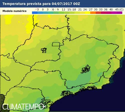 Temperaturas previstas para região Sudeste em 04/07 - Fonte: Climatempo