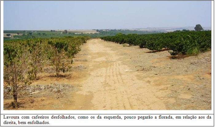 Em novembro-dezembro vai começar a queda de frutinhos em cafeeiros e essa anormalidade vai ocorrer com maior gravidade neste ano, em função de boa parte das lavouras terem florescido com pouca folhagem.