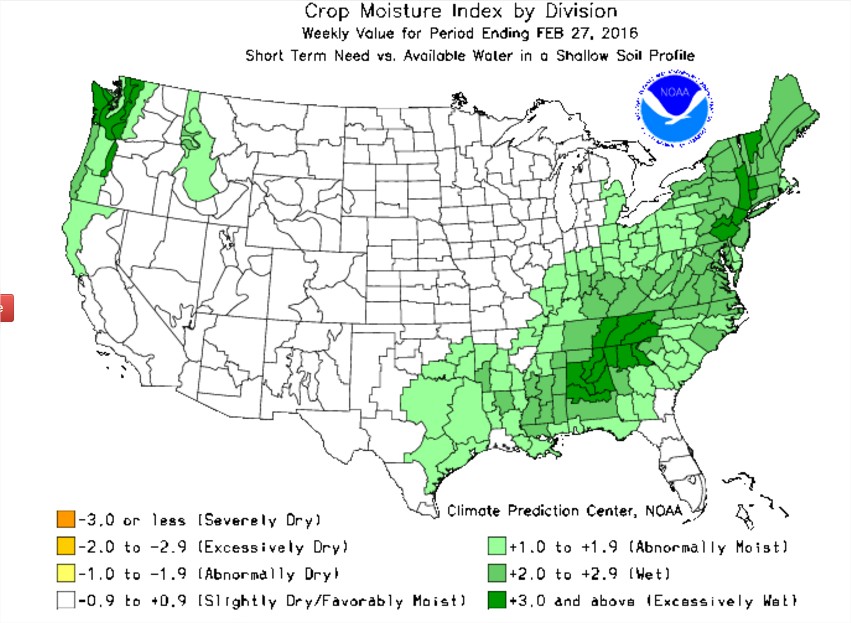 Entretanto, o U.S. Drought Monitor, um serviço do departamento norte-americano de meteorologia, mostra que o Meio-Oeste vem registrando seu maior período, desde 2005, livre da seca. A exceção fica apenas por conta de alguns poucos condados ao norte de Minnesota que têm se mostrado mais secos do que o natural para esta época.