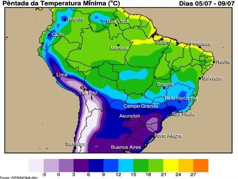E após a passagem dessa frente fria, uma massa de ar polar estará avançando sobre o Centro-Sul do Brasil e levando a um novo declínio mais acentuado das temperaturas. Onde em muitos municípios os termômetros, a partir da madrugada de quinta-feira começarão a registrar valores bem abaixo dos 10°C. Não há riscos para ocorrência de geadas. Mas em invernos marcados pela neutralidade as massas de ar polar conseguem adentrar com maior facilidade e até mesmo com maior intensidade sobre o Brasil.