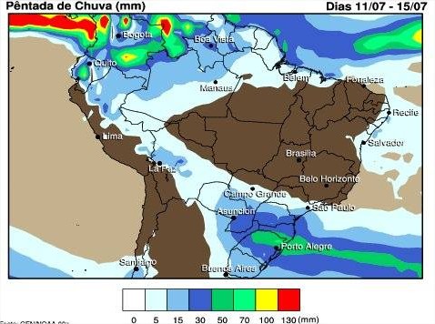 Com chuvas no Paraná e no extremo sul do Mato Grosso do Sul, as atividades de colheita do milho e a realização dos tratos culturais nas culturas de inverno, como trigo, poderão ser prejudicadas. Mas nada que venha causar danos às lavouras, já que os volumes de chuvas serão baixos e de curta duração, já que a partir de amanhã o tempo volta a abrir em toda a região.