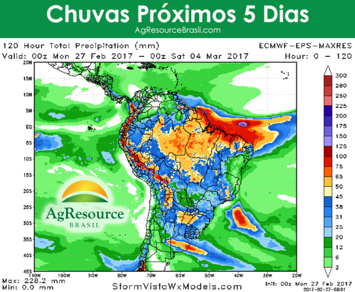 A AgResource Brasil alerta que o Sul do país volta a receber chuvas de alta intensidade já na primeira semana de março. O que deve favorecer o desenvolvimento da safra de milho safrinha e soja verão.