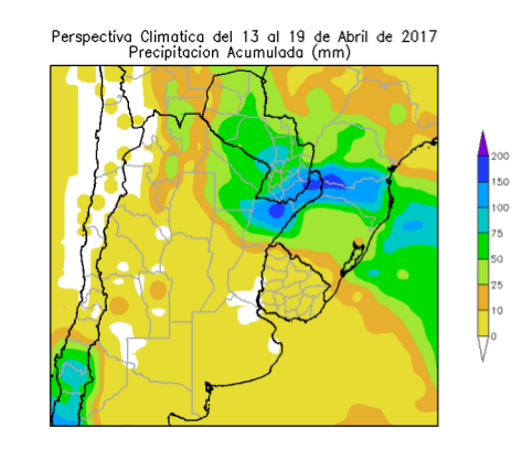 Nas estimativas de Germán Heinzenknecht, especialista da Consultoria de Climatologia Aplicada do país, o clima chuvoso nas zonas agrícolas do pampa úmido já começou a ceder. "A continuidade do mau tempo começa a ceder lentamente e por setores, não sem deixar resíduos de chuvas fracas e chuviscos nas áreas mais centrais. O sul de Santa Fe e o sudeste de Córdoba são as últimas zonas das províncias do centro a sair do sistema de mau tempo principal", indicou o especialista.