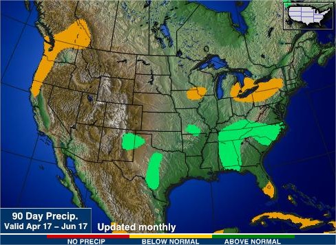Novas chuvas já começaram a chegar ao Meio-Oeste dos Estados Unidos nesta terça-feira (25), podendo trazer lentidão ao plantio novamente. "Precipitações devem rapidamente retornar à região oeste do Meio-Oeste, ao leste das Planícies e ao norte do Delta do meio para o fim desta semana", diz Don Keeney, do serviço meteorológico MDA, em entrevista ao site britânico Agrimoney.
